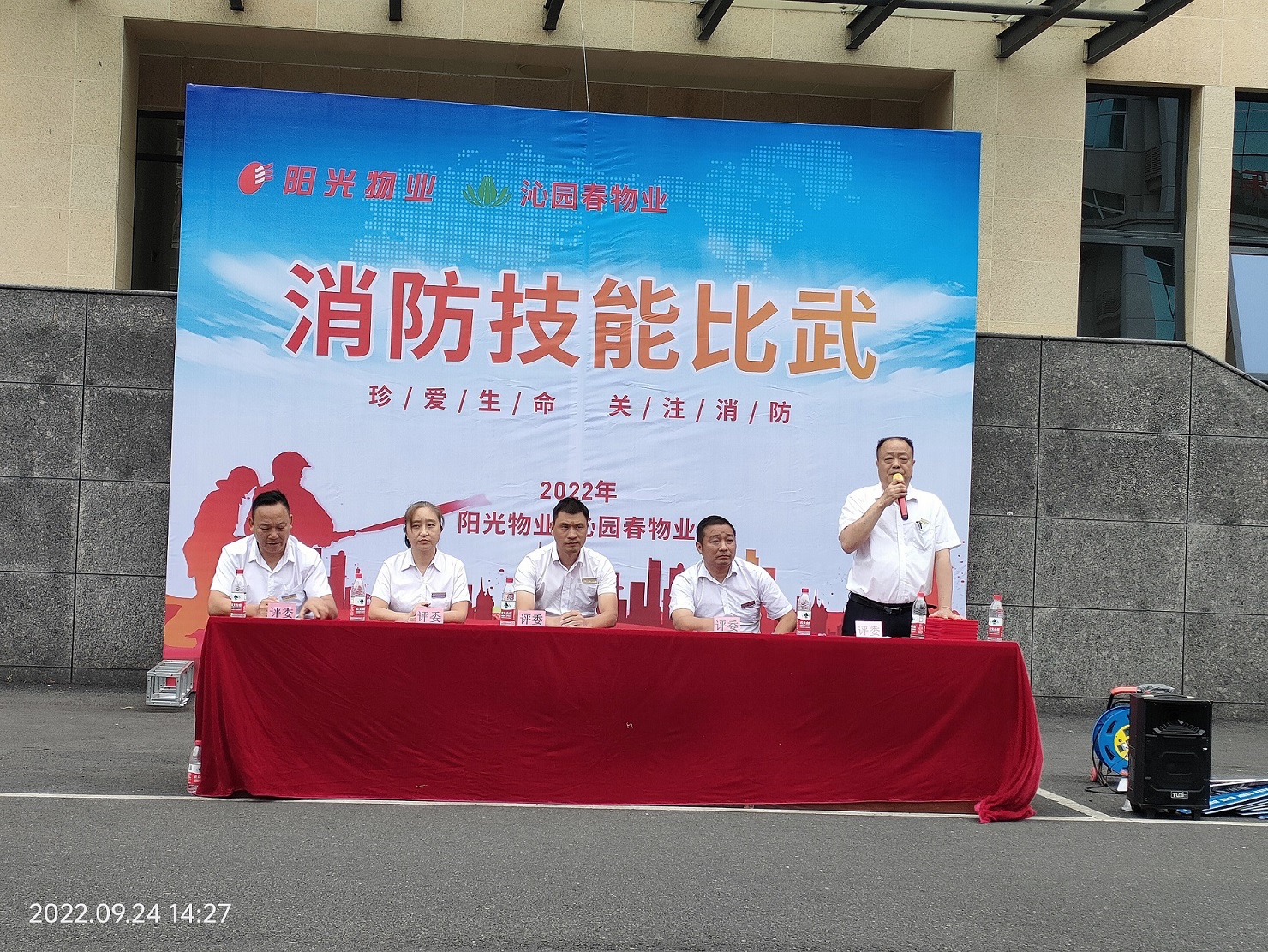 為全力打造平安家園、安全環(huán)境,增強員工消防安全意識,進一步提高各項目的安全操作流程,陽光物業(yè)、沁園春物業(yè)聯(lián)合于2022年9月24日下午,在武陵區(qū)機關大院舉行了消防演習比武大賽,本次消防比武活動由品質部全程策劃,在總部和區(qū)機關全體工作人員的配合下,此次比武大賽圓滿結束。
